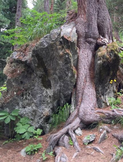 Ein Samen keimt, verankert sich mit ersten Wurzeln im dünnen Boden, winzig klein zuerst, kein Stamm, nicht mal Stämmchen, überlebt jedes Wetter, überlebt Tierfrass, Steinschlag, ein erstes Jahr, ein zweites, ein drittes. Überlebt. Formt sich. Stösst auf Widerstand. Wird geformt. Drückt sich zwischen zwei Felsblöcken empor. Beginnt sie zu überragen. Wächst über sie hinweg. Unaufhaltsam. Wird zur viele Meter hohen Arve, vor der ich jetzt staunend stehe.